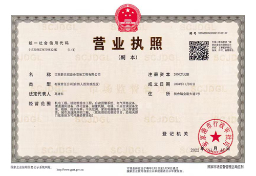 江蘇新世紀設備安裝工程有限公司是一家從事空調銷售、安裝工程及維修的企業,公司是一個跨地區經營的綜合施工企業,擁有機電設備安裝承包二級、消防設施工程承包二級。公司注冊資金2000萬元,已具有18年歷史,擁有雄厚的技術、經濟實力。